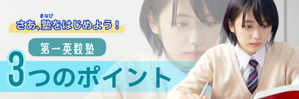 「学校の授業についていけるか不安…」「テスト前になると何を勉強していいかわからない…」 「家ではスマホばっかり触って集中できない…」そんなお悩みはありませんか? 第一英数塾では、日々の授業での「先取り&演習」と、テスト直前の「集中対策」、放課後時間の「有効活用」を組み合わせた独自のメソッドで、お子様の「わかった!」と「点数が取れた!」を全力でサポートします。