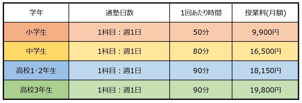 科目・時間・授業料等