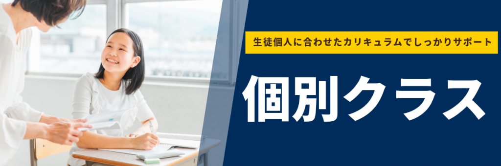 先生1人に対し生徒2名までの個別指導です。その塾生1人1人に応じたカリキュラムや時間割で、担任講師が分かるまで懇切丁寧に教えます。「低学年の基礎からもう一度復習したい」,「学年を超えて高度な学習をしたい」,「学校の宿題、自学習での疑問点を質問したい」等、様々ななご要望にお応えできます。私立校の方や自分の学習に対する目標が明確な方にはぴったりです。また指導科目も英語・数学(算数)・国語・理科・社会の中から1科目だけでの受講も可能です。